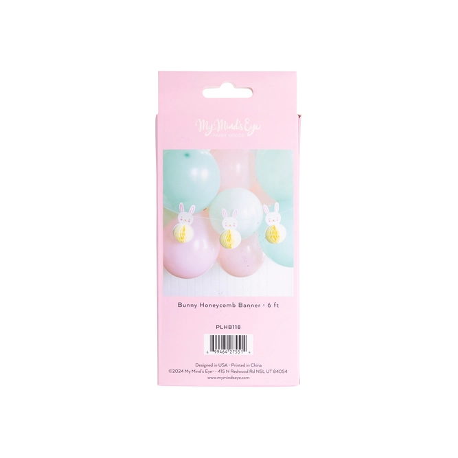 Adorable bunny honeycomb banner by My Minds Eye. A gorgeous Easter garland decoration. Add balloons & streamers to create a stunning party backdrop.