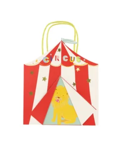 Let your guests roll up, roll up to get their sensational gift bags. They’re cleverly designed and crafted to look like a big top, with a cheeky lion peeking out. Perfect to fill with circus party gifts and treats, and to use as a fun storage bag afterwards too.