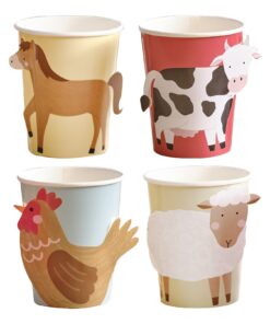 Cute and fun farm animal paper cup set by Ginger Ray. Elevate your farm themed party with these paper cups – each cup features an adorable animal design.