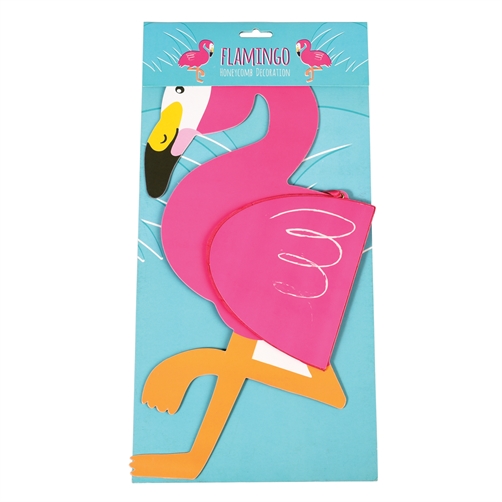 Flamingo honeycomb decoration. Includes a hanging ribbon and paper clips for assembly.