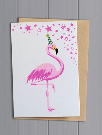 I adore the attention to detail of this most gorgeous flamingo with his/her party hat on! The image does not do the card justice with its vibrant colours and outstanding quality.