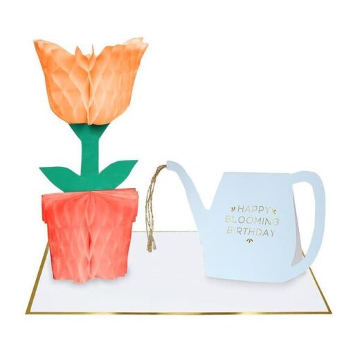 Birthdays only come round once a year, so it’s important you send your loved one many happy returns in the most special way possible! Why not send them this wonderful birthday card, featuring a brightly colored honeycomb flower and vase, a delightful cut-out watering can insert and gold metallic string embellishments.