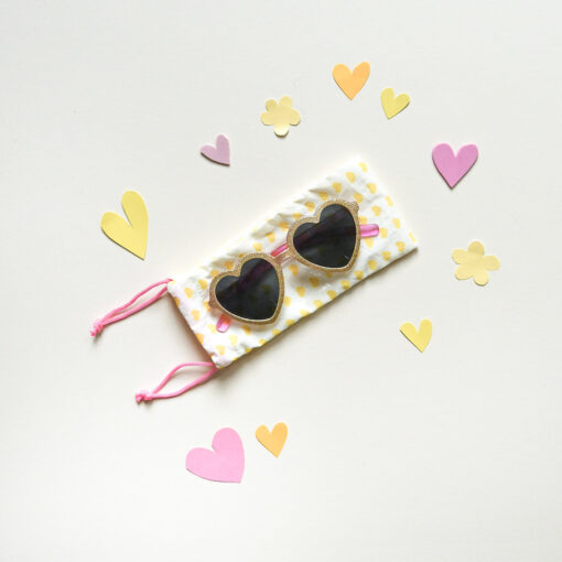 A gorgeous glittery pair of sunnies! With glittery gold frames and jelly pink arms they are the perfect shades for any summer adventure! Each pair comes with a cleaning case and offers full UV protection.