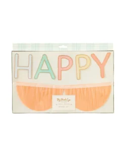 Brighten up springtime with this “Happy Easter” banner set. With soft pastel colors and gold foil accents this word banner adds some springtime festivity to your Easter parties. And the soft pink fringed tissue banner will elevate your home or party space, making the backdrop of a joyous Easter season!