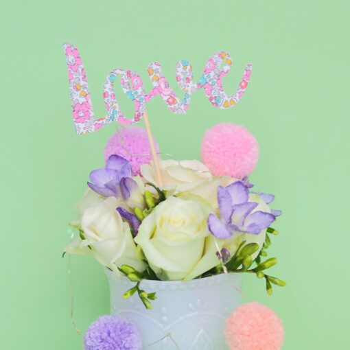 Adorable Liberty of London LOVE Cake Topper by The Paper Rainbow company. Hand made with love in the UK by the fabulous Paper Rainbow Company using Liberty of London fabrics.
