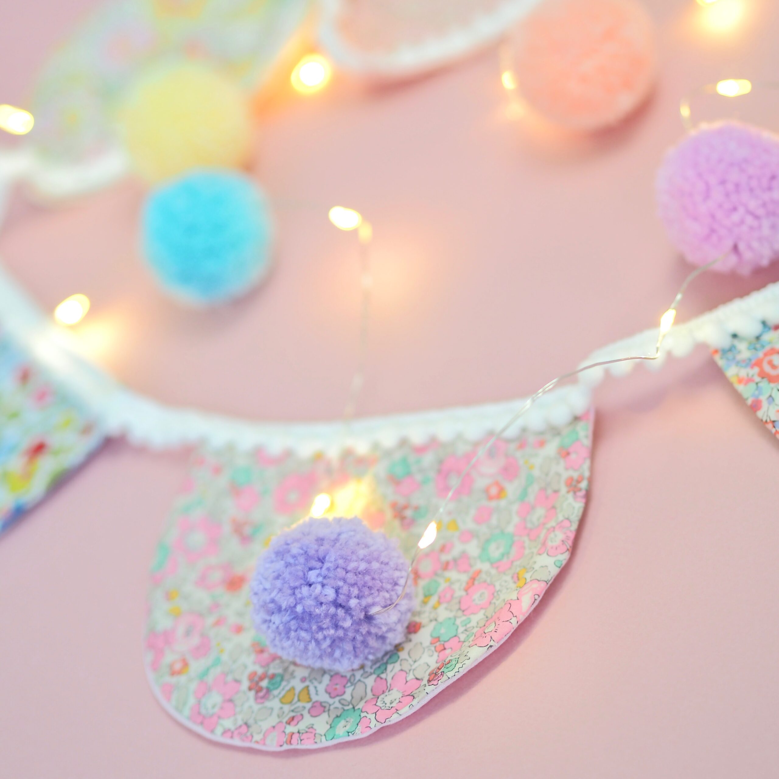 Liberty Print LOVE Banner With Pom-Poms - By Paper Rainbow Co