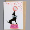 This is one of the most adorable cards ever, a cute brown bear wearing his funky party hat. The image doesn’t do the colours or the quality justice. The flashes of neon orange stars bring a modern shot of energy to the nostalgic bear.