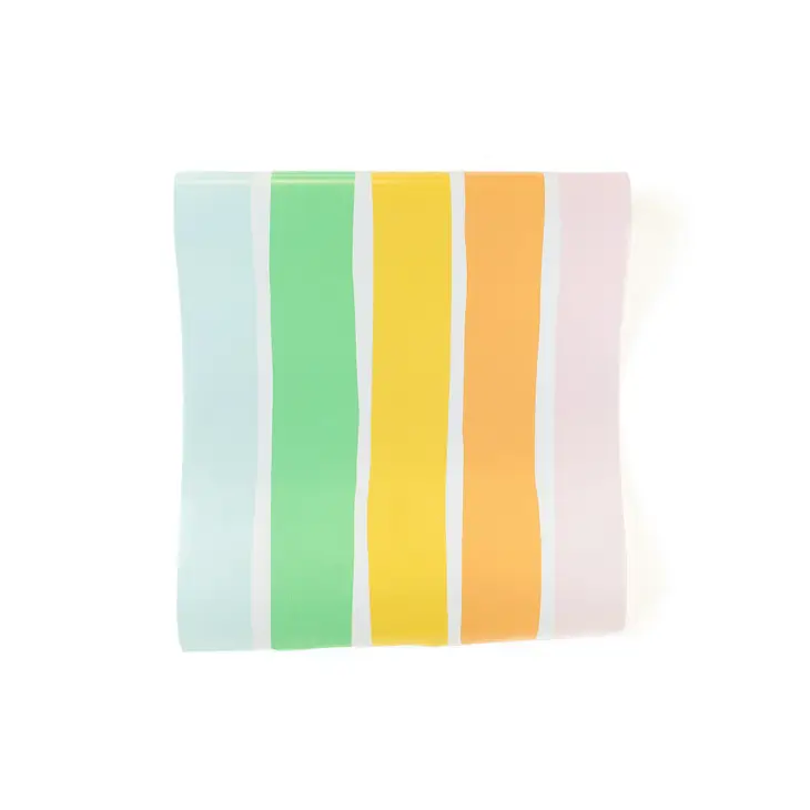 Brighten your party’s table with this cheerful rainbow table runner. Your table will shine with this table runner, simply roll it out and add sweet treats for an effortless table scape. From St. Patrick’s Day to unicorn parties this pastel table runner chases gray skies away and invites the sunshine to your table!