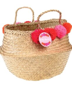 Gorgeous raffia storage basket with grey and white pompom trim details by Sass & Belle. Enjoy seagrass, tassels and more with our on-trend Scandi Boho storage/toy baskets. Perfect for pretty much any room in your house, perfect for pretty much anything from toys to laundry, These stylish pieces add touches of Scandinavian-esque charm to the home.