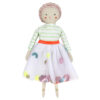Pretty Doll called Ruby by Meri-Meri. This delightful dress-up doll will make the perfect companion for an imaginative child. _Ruby is crafted with calico fabric with embroidered details and comes wearing a removable stripey top and a tutu made from layers of netted fabric with loose and attached confetti pieces. The doll’s hair is made from plaited black wool.