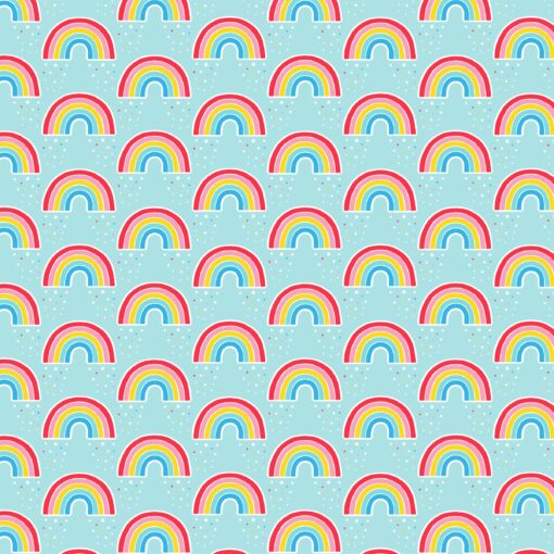 Gorgeous Rainbow print gift wrap paper by Sass & Belle. Add a touch of sunshine to your gifting with our Chasing Rainbows wrapping paper, featuring an array of colourful rainbows on a sky blue background.