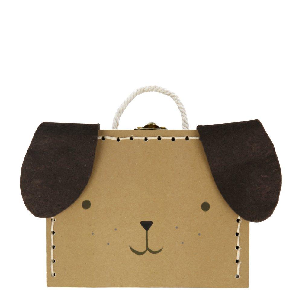 Cute and cuddly stripy puppy in a suitcase set by Meri-Meri.