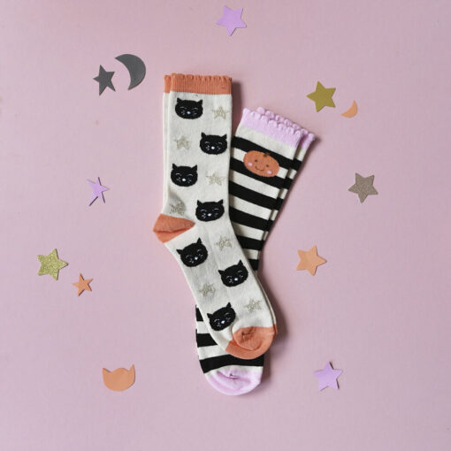 Our two pack of super soft socks are frightfully fun and perfect for halloween season! Featuring pumpkins and spooky stripes, they’re also made with organic cotton so super soft on little toes. Match with our halloween collection for the perfect combo!