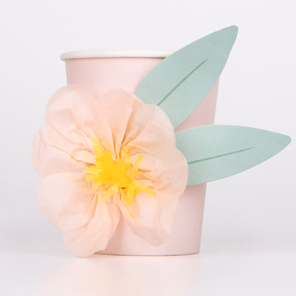 Who says cups have to be plain? We love clever embellishments that make our partyware stand out from the norm. These gorgeous cups feature tissue paper flowers and paper leaves for a truly elegant look. They are perfect for an engagement party, garden party, princess party or any celebration where you want a touch of floral beauty.